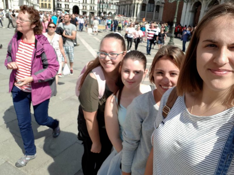Szerdán Velencébe vettük az irányt. Ez volt kirándulásunk fénypontja, ugyanis a rengeteg eső mellett végre kisütött a nap is. Először Adorján tanár úr vezetett végig minket a főbb nevezetességeken, mint például a Sóhajok hídja, Szent Márk tér és a halpiac. Ezután mi is kaptunk szabadidőt, hogy barangolhassunk a városban. A szabad program alatt sok üzletbe jártunk, megtekinthettük a Szent Márk bazilikából nyíló velencei panorámát, majd ismét hajóra szálltunk és visszautaztunk Bibione-ba. Még aznap este összepakoltunk, másnap reggel pedig Magyarország felé vettük az irányt. Összegezve a rossz idő ellenére sokat fürödtünk a tengerben, és a hangulatunk is gyakran hágott a tetőfokára.