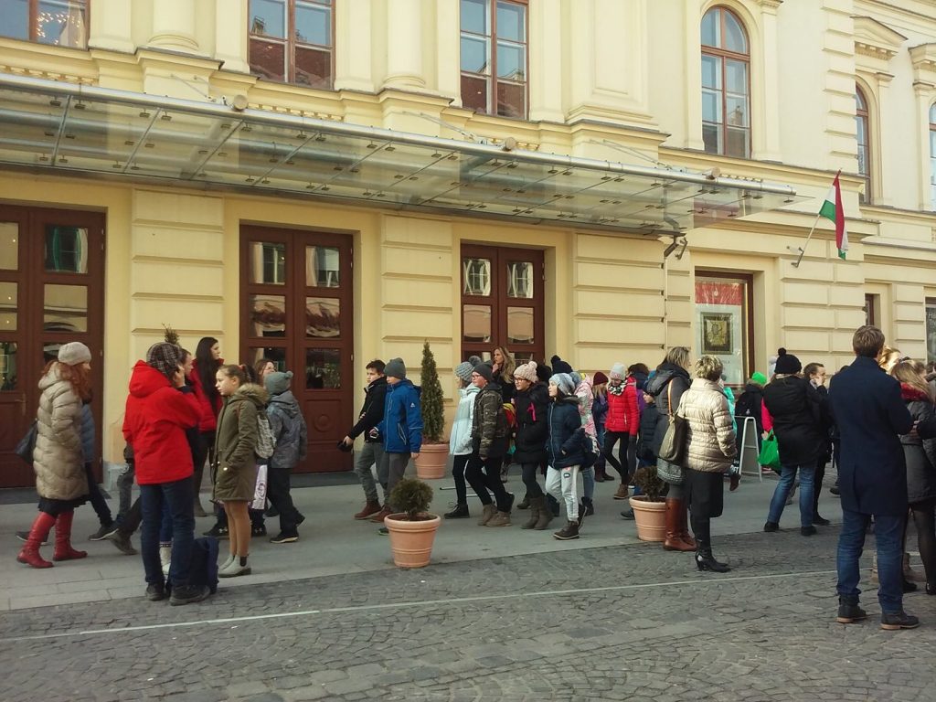 Január 25-én lehetőségünk adódott megtekinteni egy angol nyelvű színdarabot, a Rómeó és Júliát Székesfehérváron, a Vörösmarty Színházban. Reggel már jónéhányan gyűltünk össze kísérő tanárainkkal az iskola aulájában. Nyolc órára Megérkezett a buszunk, és kezdetét vette a hosszú, de annál vidámabb utunk. A színházlátogatás előtt még körbetekinthettük a gyönyörű országzászló teret. Az előadás kezdetére mindenki visszatért a rövid városnéző körútjáról. A színházba érve azonnal megkezdődött az ülőhelyekért folytatott közelharc, azonban mindenkinek sikerült kényelmesen elhelyezkednie. Még szerencse hogy a színészek és színésznők artikuláltan és hangosan beszéltek, mert így is nehezünkre esett megérteni, hogy mégis mit mondanak a darabban, ugyanis mint ahogy már említettem, ez egy angol nyelvű előadás volt. Persze azért mindenki ki tudta következtetni, vagy ha elég ügyes volt, lefordítani, és végre hasznát vehettük a kőkemény angolóráknak. Az előadás nemcsak érdekes, hanem vicces is volt, ugyanis modernizálták egy kicsit a darabot, és a színészek is remekül játszották a szerepüket, különösen a két főszereplő (bár bevallom őszintén, nekem a Rómeót megformáló színész kísértetiesen hasonlított a Shrek c. mesében a Szőke Hercegre, de ez mellékes…). A többiek nevében is nyugodtan kimondhatom, hogy nagyon jól éreztük magunkat, és egykettőre vége lett a színműnek.