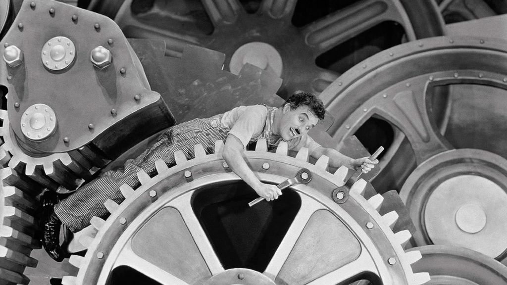 A kisemberek kiszolgáltatottságát mi sem reprezentálja jobban, mint Charlie Chaplin Modern idők című 1936-os filmje, ami MÁR AKKOR megjósolta ezt a folyamatot, és mondanivalója még ma is releváns.
